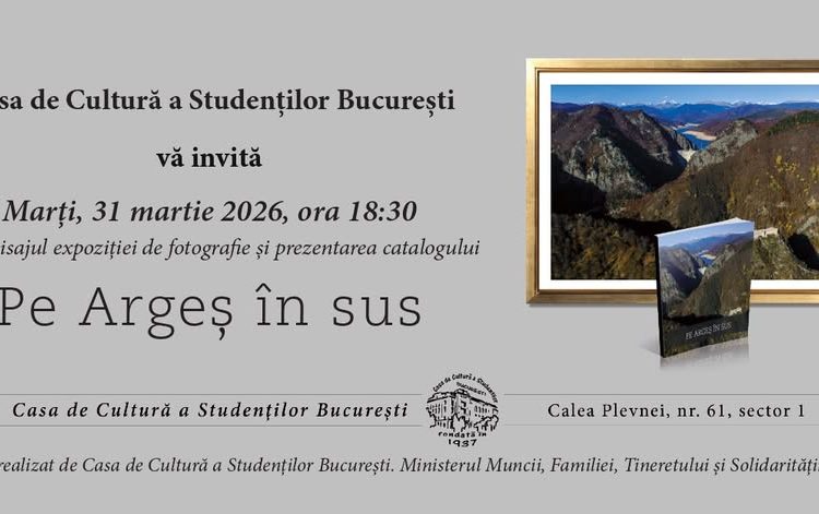 Marți, 31 martie 2026, ora 18:30, la Casa de Cultură a Studenţilor Bucureşti din Calea Plevnei nr. 61, sector 1, va avea loc vernisajul expoziţiei şi prezentarea catalogului Pe Argeș în sus, din cadrul proiectului Romania Student Tour – program naţional de redescoperire şi promovare a valorilor patrimoniului natural şi cultural. Festivitatea va fi transmisă on line și live-streamed pe pagina de facebook Fotogeografica.